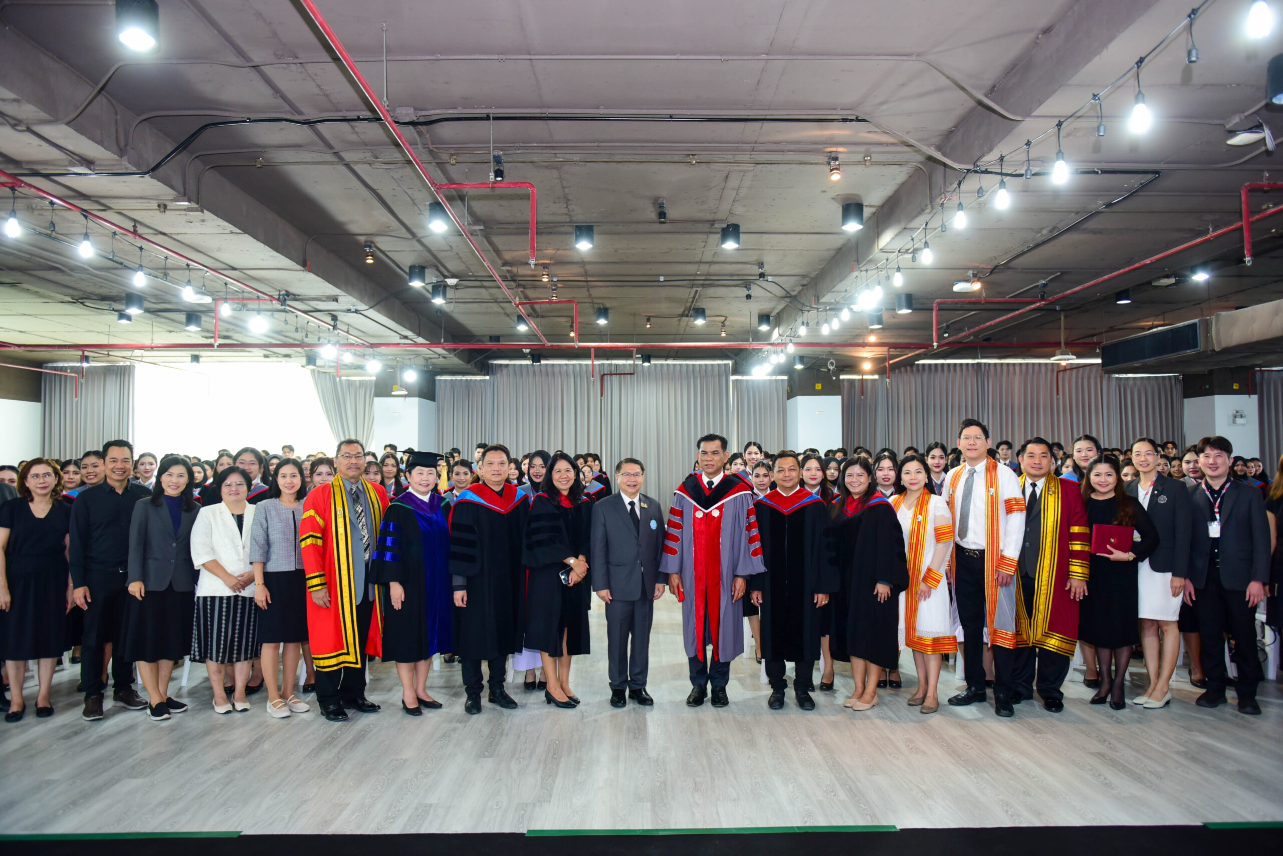 รองศาสตราจารย์ ดร.ชลวิทย์ เจียรจิตต์ อธิการบดีมหาวิทยาลัยศรีนครินทรวิโรฒ พร้อมด้วยผู้บริหารมหาวิทยาลัย คณบดีคณะศึกษาศาสตร์ และผู้บริหารคณะศึกษาศาสตร์ ร่วมถ่ายภาพหมู่ร่วมกับบัณฑิตคณะศึกษาศาสตร์
