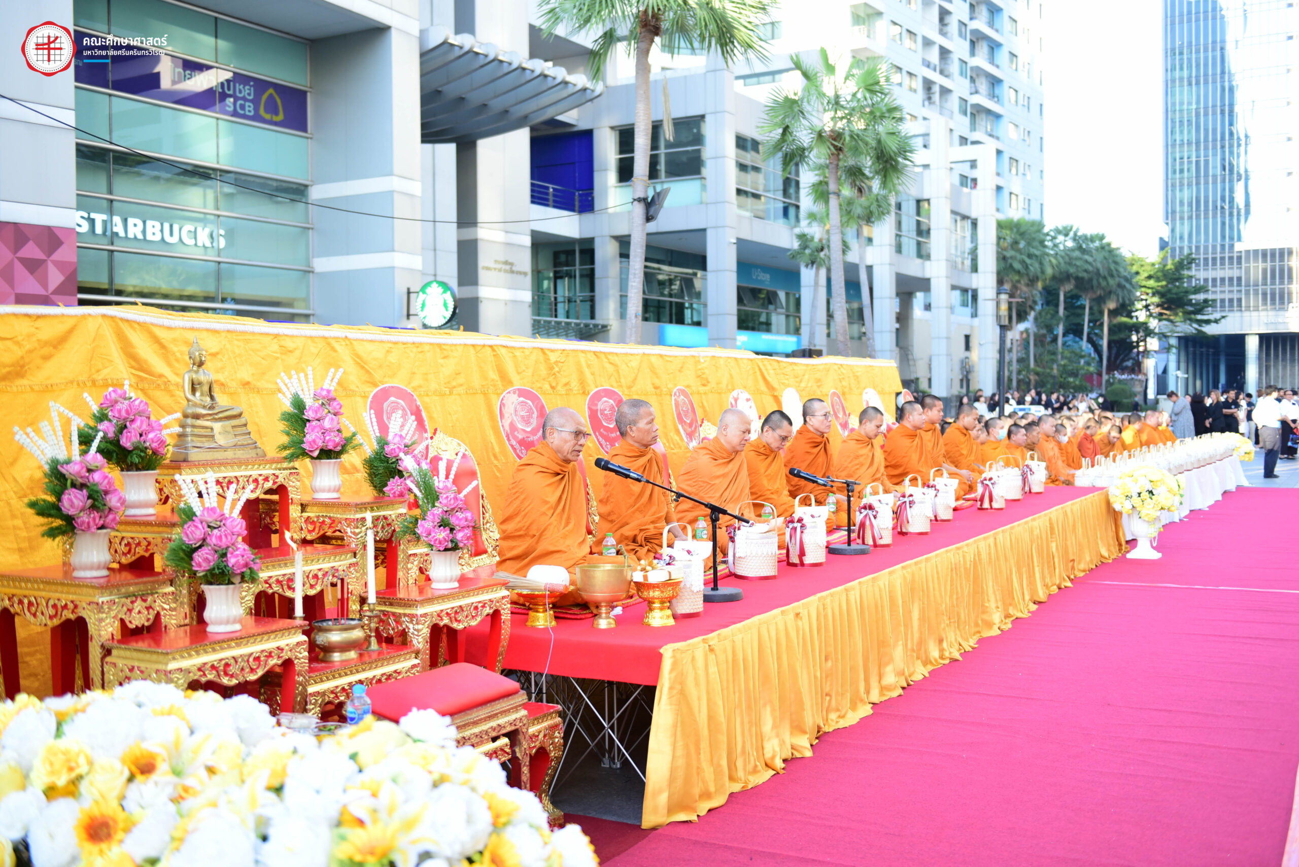 พิธีทำบุญตักบาตร ข้าวสารอาหารแห้ง และเครื่องใช้สำหรับพระสงฆ์ (พระสงฆ์ 77 รูป)