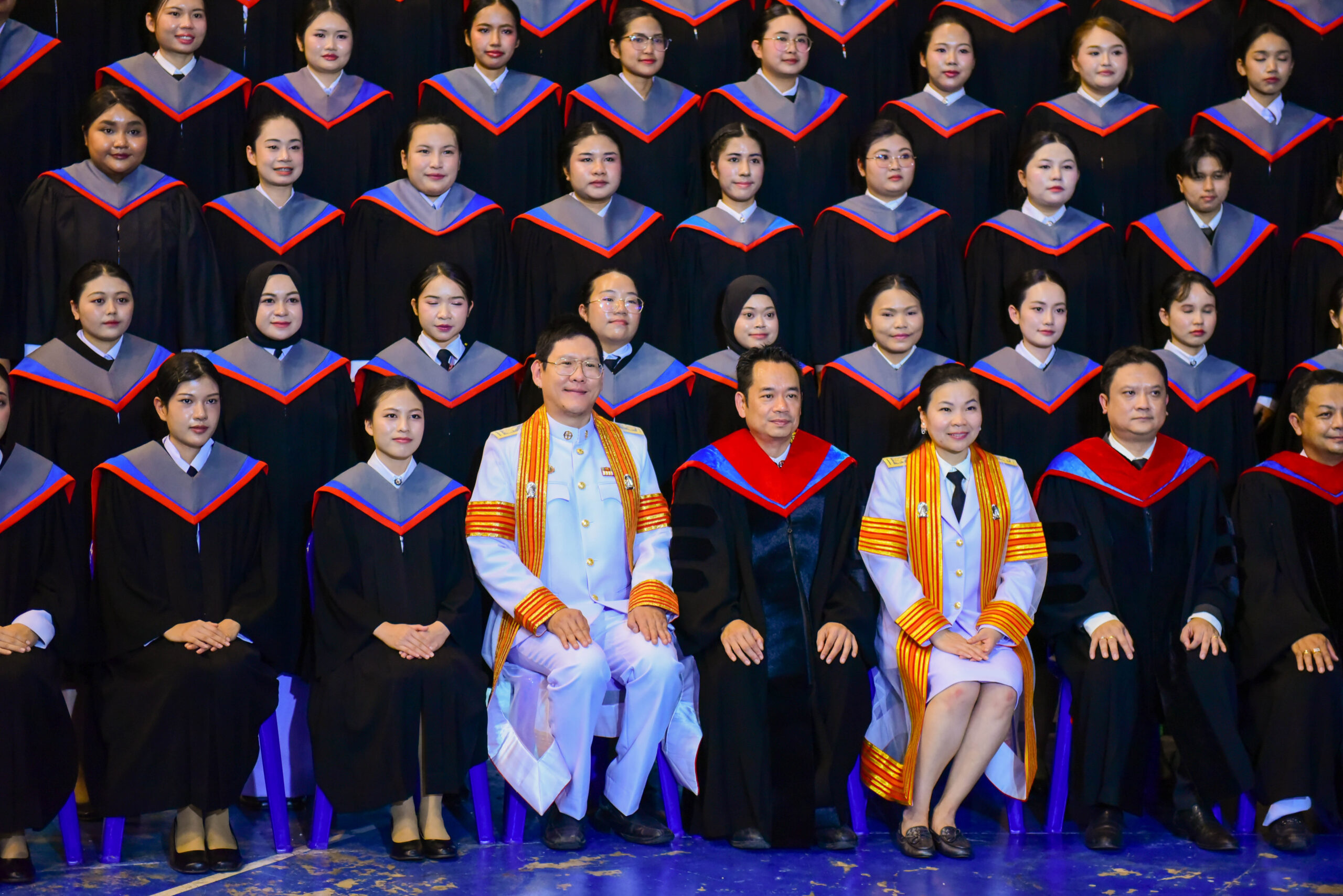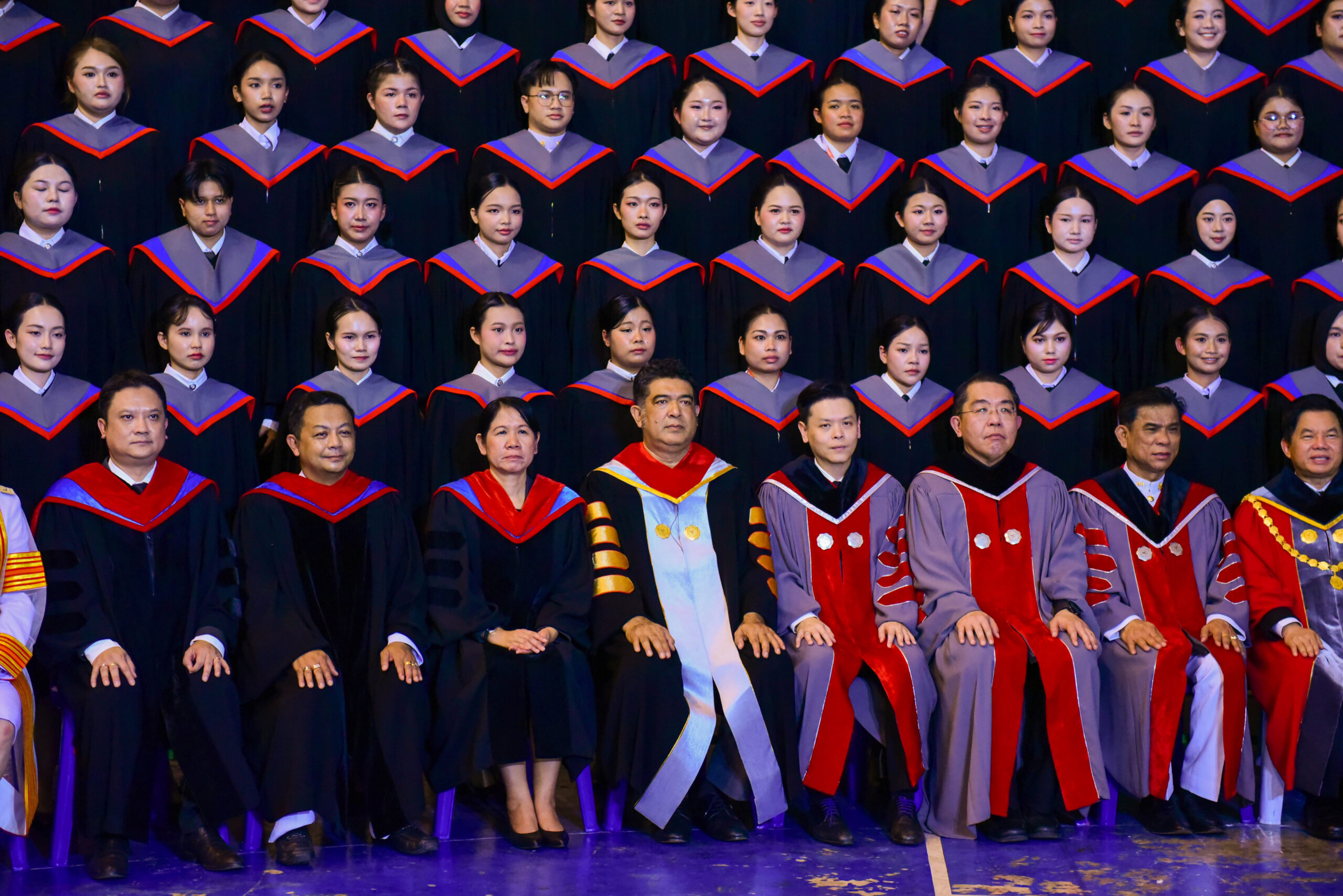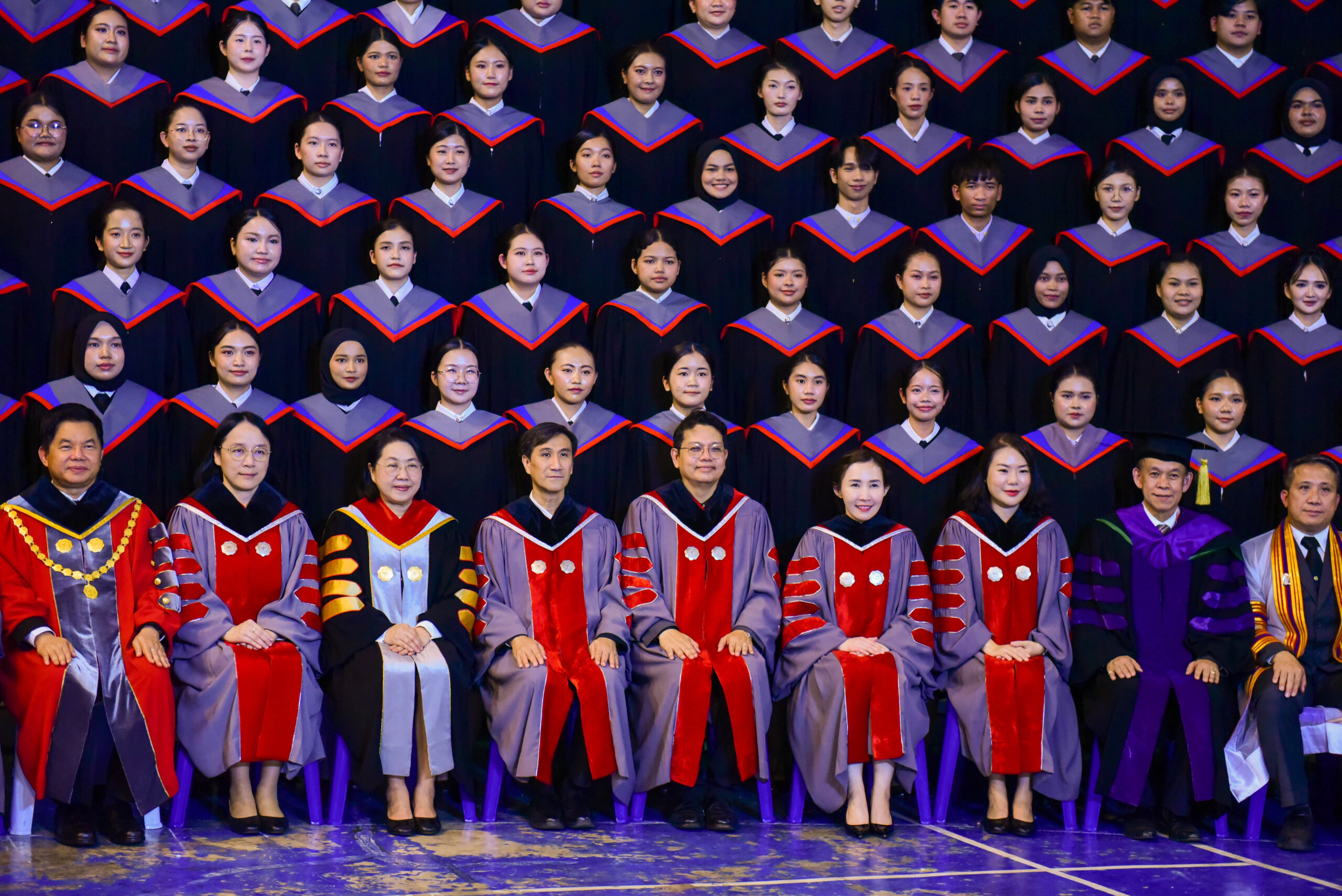 รองศาสตราจารย์ ดร.ชลวิทย์ เจียรจิตต์ อธิการบดีมหาวิทยาลัยศรีนครินทรวิโรฒ พร้อมด้วยผู้บริหารมหาวิทยาลัย คณบดีคณะศึกษาศาสตร์ และผู้บริหารคณะศึกษาศาสตร์ ร่วมถ่ายภาพหมู่ร่วมกับบัณฑิตคณะศึกษาศาสตร์