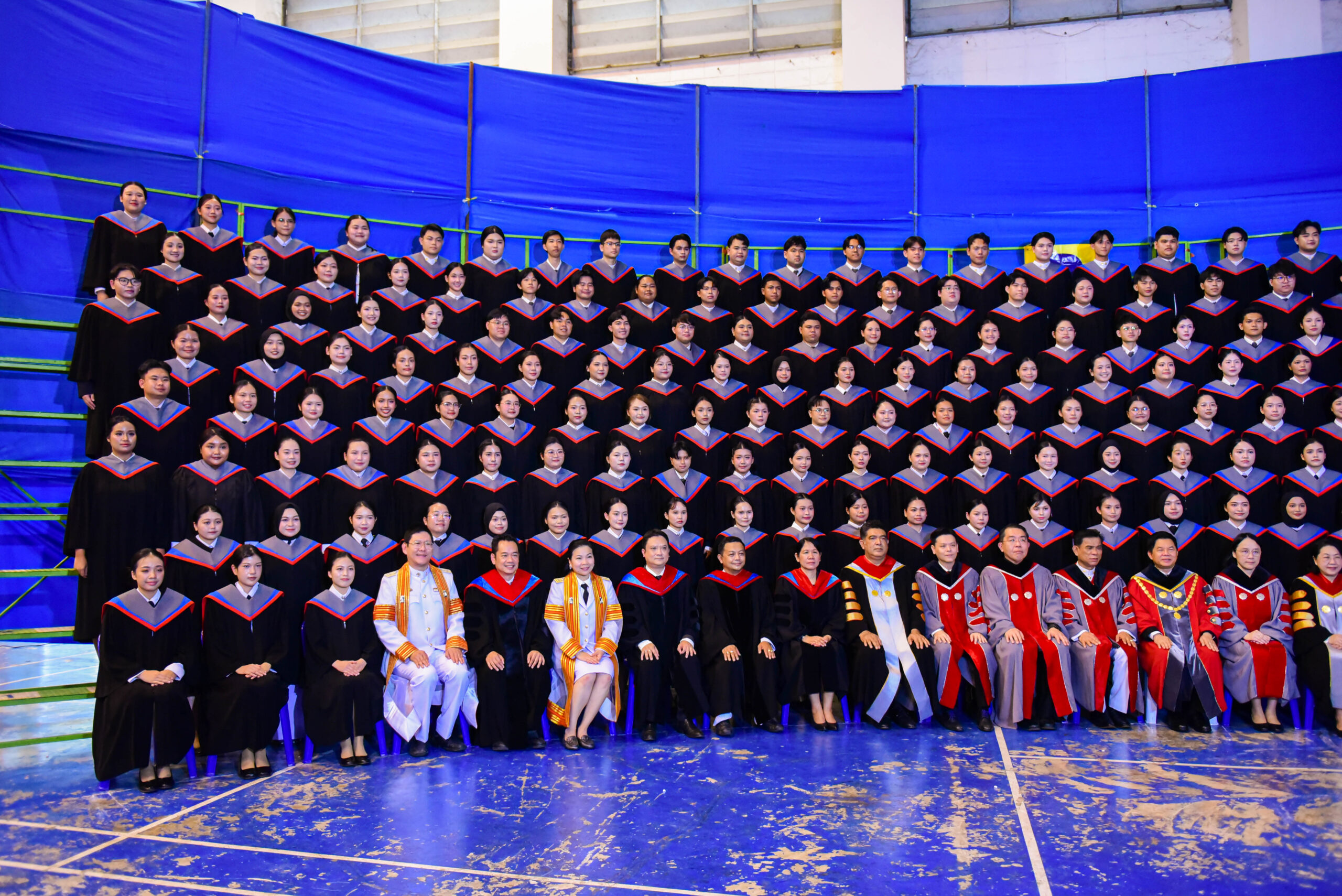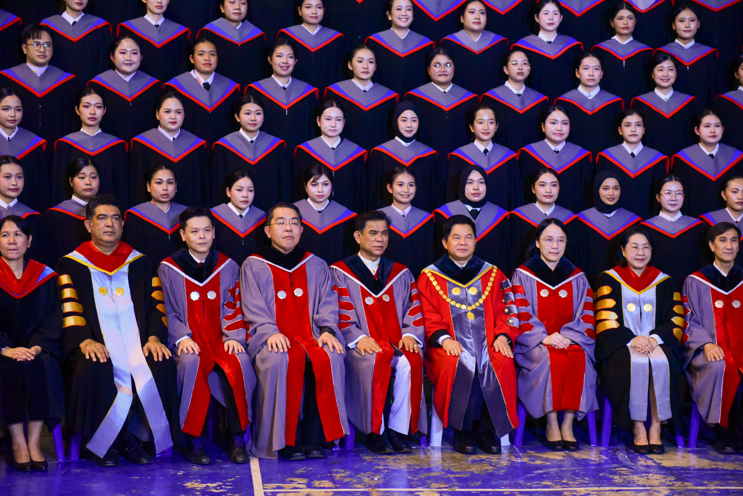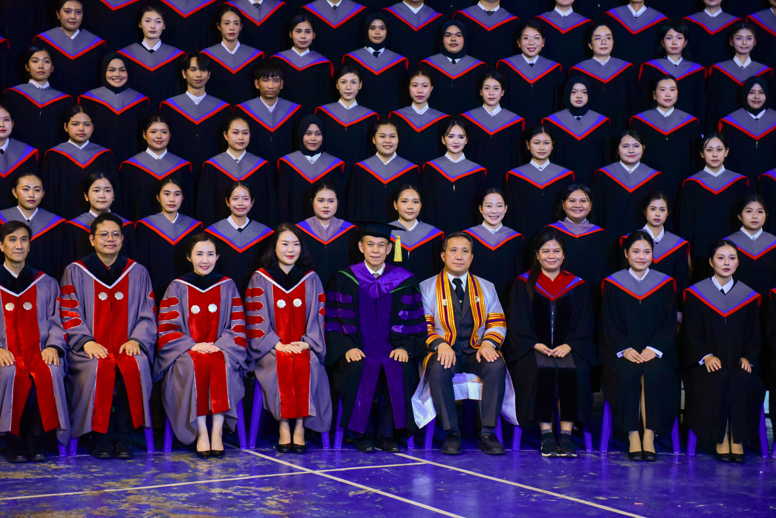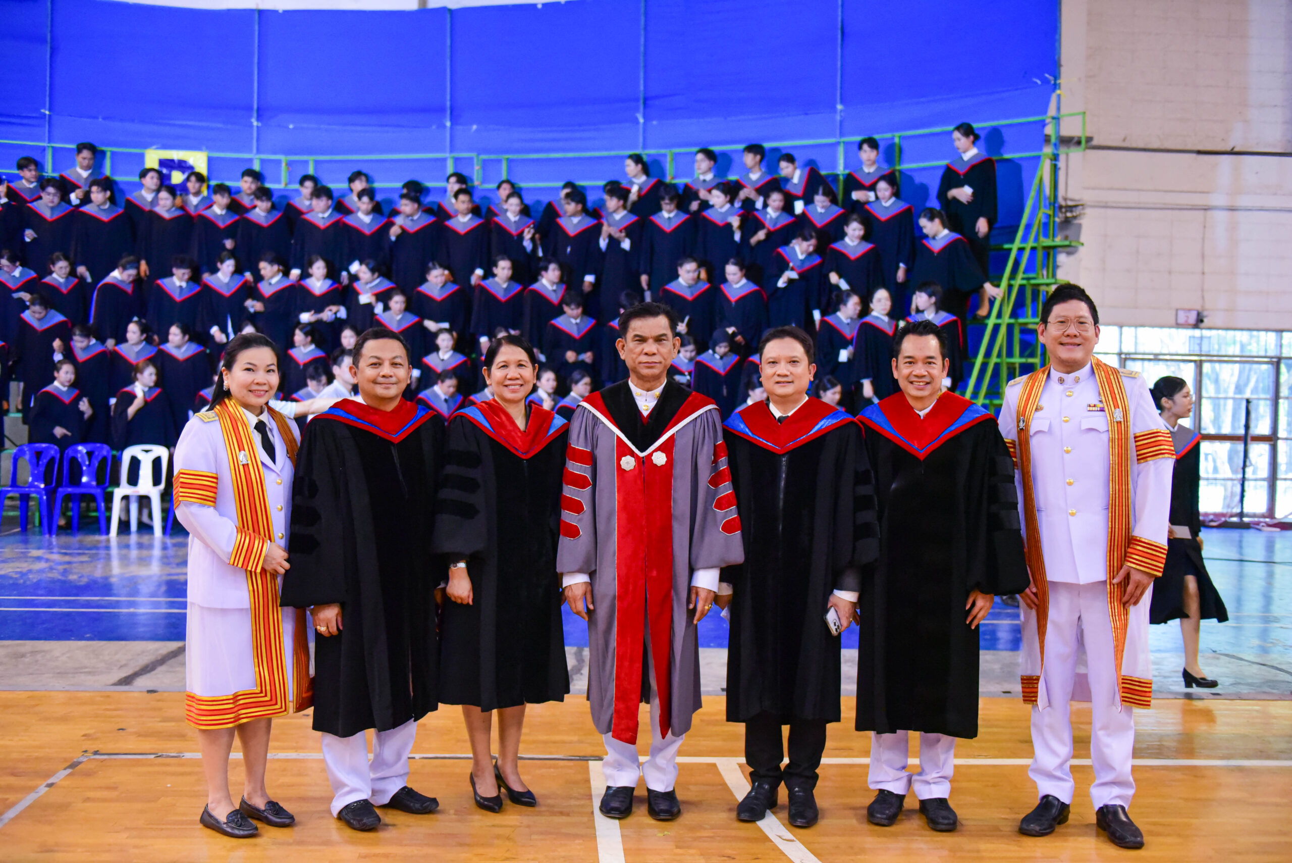 รองศาสตราจารย์ ดร.ชลวิทย์ เจียรจิตต์ อธิการบดีมหาวิทยาลัยศรีนครินทรวิโรฒ พร้อมด้วยผู้บริหารมหาวิทยาลัย คณบดีคณะศึกษาศาสตร์ และผู้บริหารคณะศึกษาศาสตร์ ร่วมถ่ายภาพหมู่ร่วมกับบัณฑิตคณะศึกษาศาสตร์