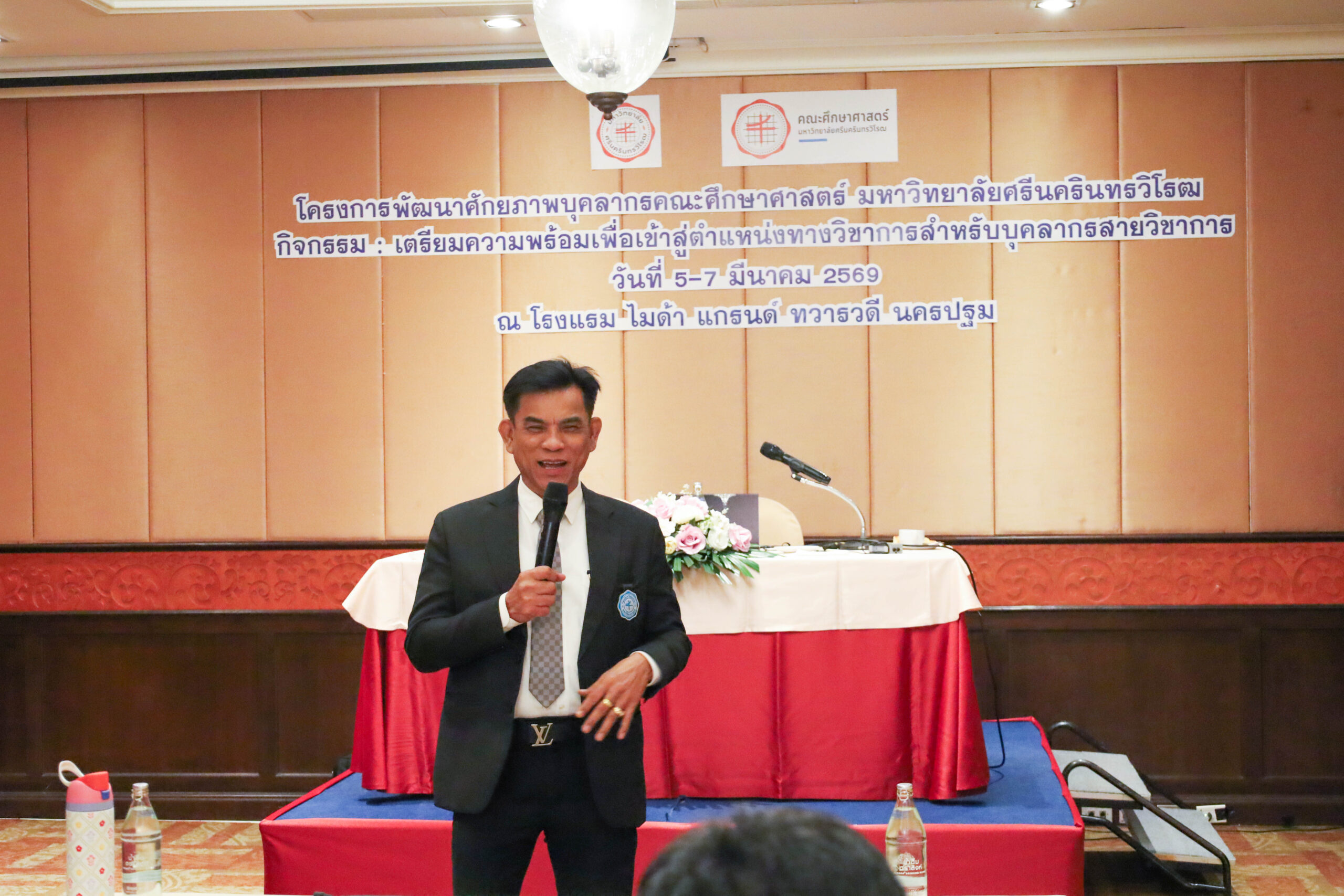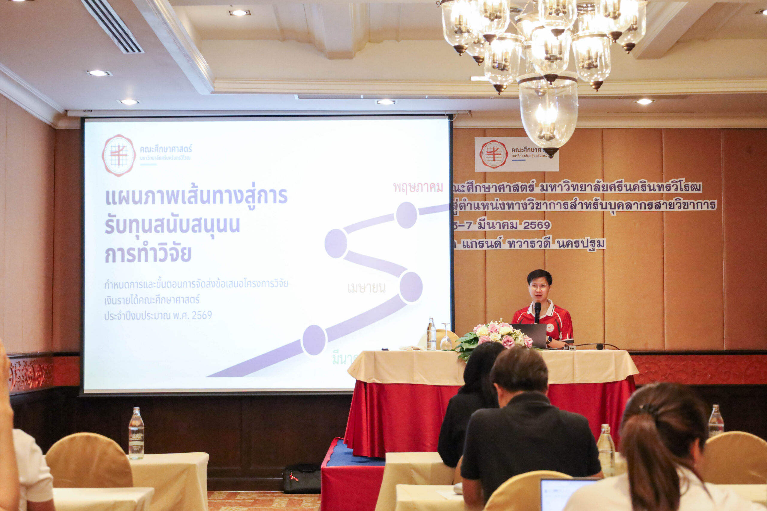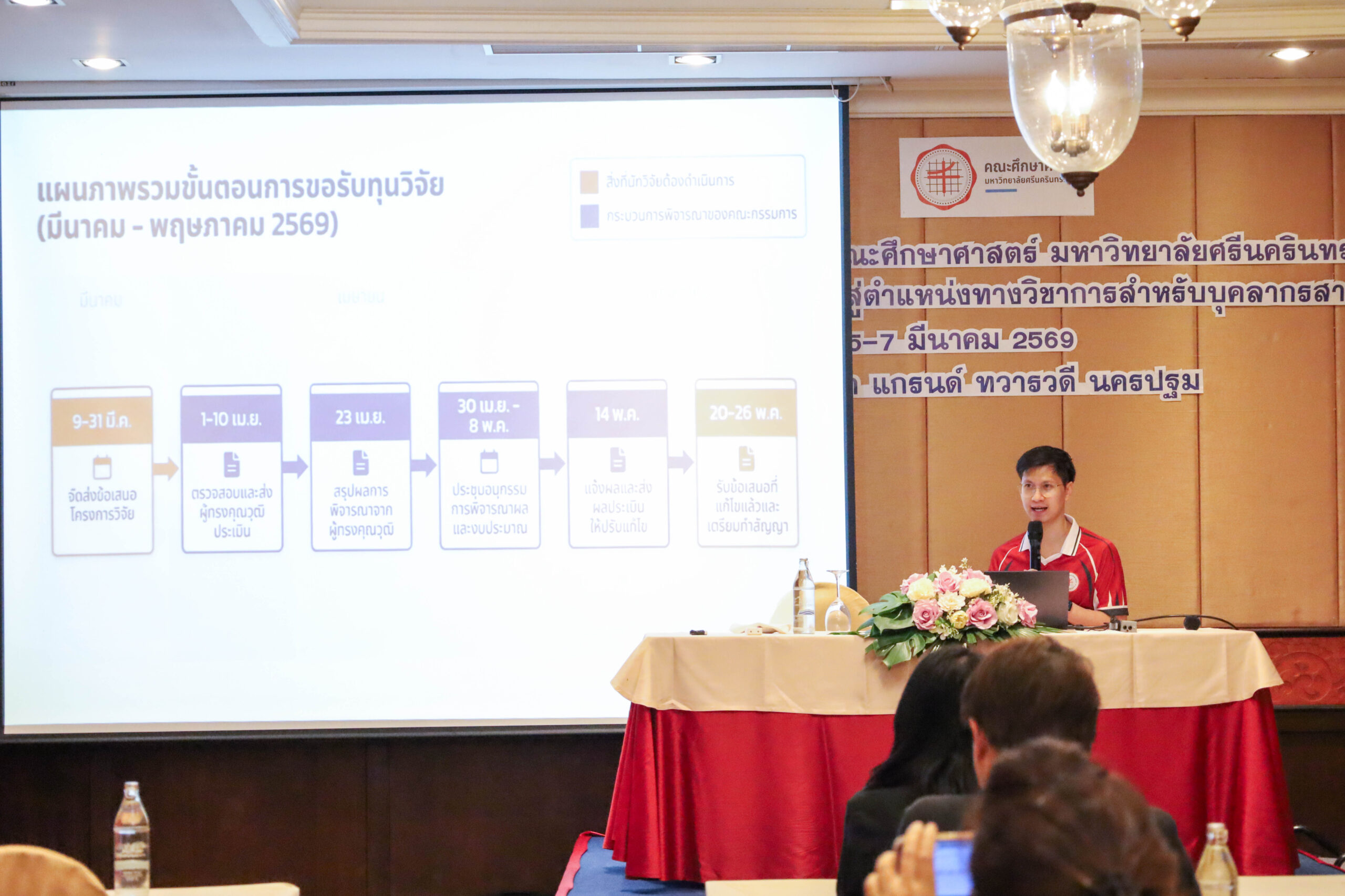 การบรรยายในหัวข้อกำหนดการและขั้นตอนการจัดส่งข้อเสนอโครงการวิจัยเงินรายได้คณะศึกษาศาสตร์ ประจำปีงบประมาณ พ.ศ.2569 โดย ผศ.ดร.ปวัฒวงศ์ บำรุงขันท์ ผู้ช่วยคณบดีฝ่ายวิชาการ วิจัย และนวัตกรรมทางการศึกษา