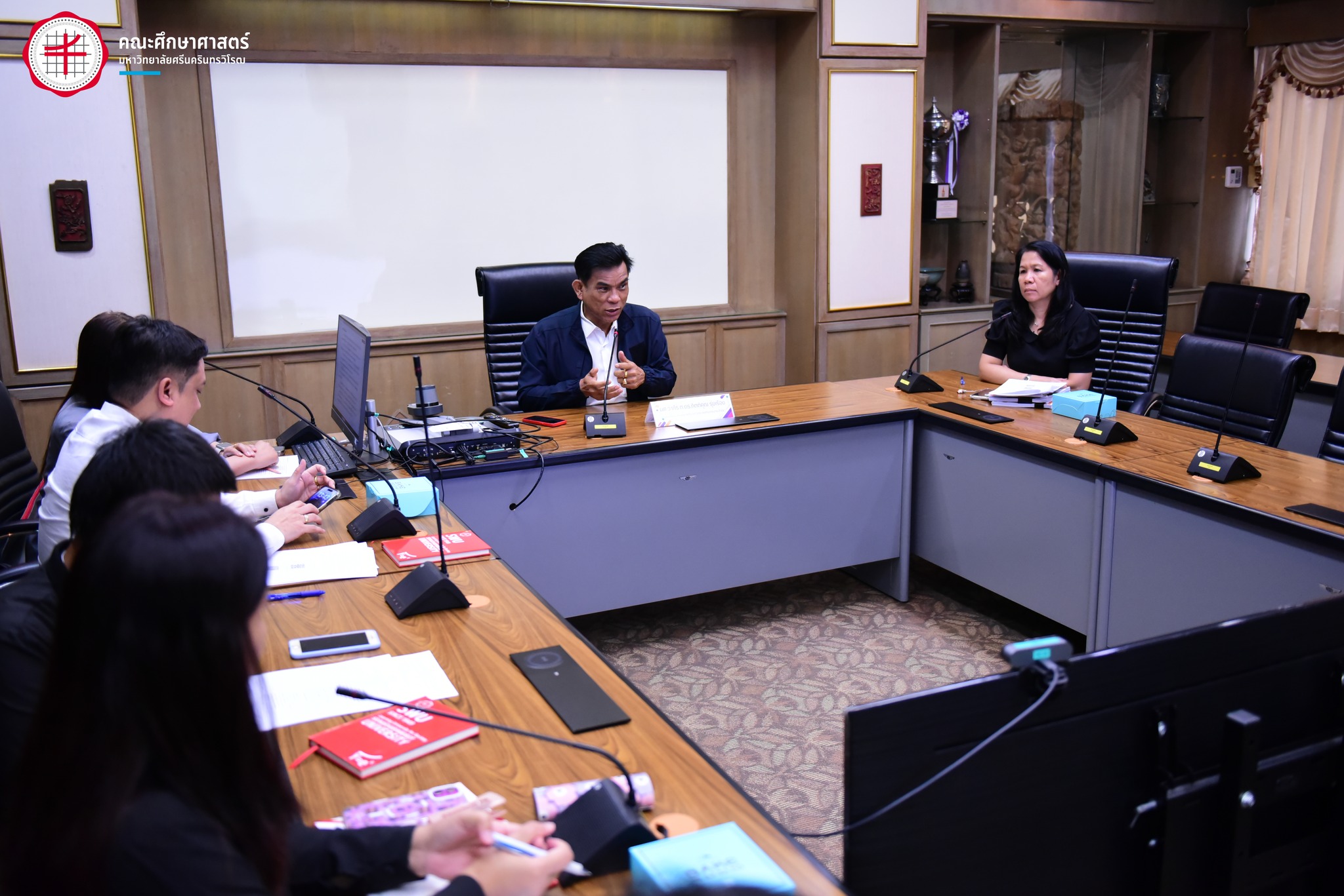 [หน่วยฝึกประสบการณ์วิชาชีพครู] ผู้ช่วยศาสตราจารย์ ว่าที่ร้อยตรี ดร.กิตติคุณ รุ่งเรือง คณบดีคณะศึกษาศาสตร์ ประชุมเพื่อหารือเตรียมความพร้อมเกี่ยวกับคุณสมบัติคณาจารย์ของคณะร่วมผลิต ที่จะทำหน้าที่เป็นอาจารย์นิเทศก์เพื่อให้เป็นไปตามเกณฑ์มาตรฐานคุรุสภา โดยการประชุมในครั้งนี้ มี รองคณบดีฝ่ายวิชาการ 6 คณะร่วมผลิต พร้อมด้วยบุคลากรสายสนับสนุนวิชาการ คณะศึกษาศาสตร์ และคณะร่วมผลิตเข้าร่วมการประชุม วันพุธที่ 1 เมษายน 2569 ณ ห้องประชุมศาสตราจารย์ (พิเศษ) ดร.ทรงศักดิ์ ศรีกาฬสินธุ์ ชั้น 3 คณะศึกษาศาสตร์ มหาวิทยาลัยศรีนครินทรวิโรฒ