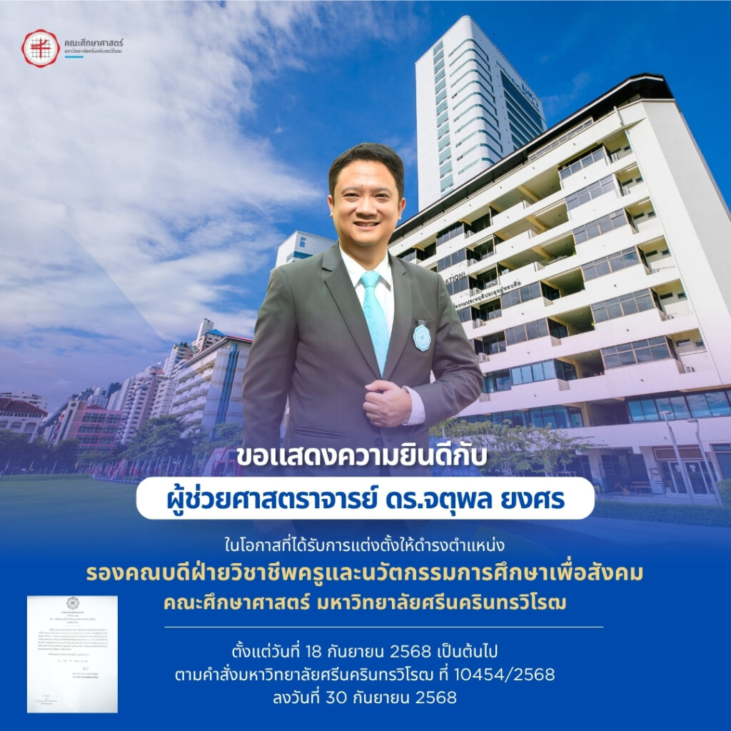 ตั้งแต่วันที่ 18 กันยายน 2568 เป็นต้นไป ตามคำสั่งมหาวิทยาลัยศรีนครินทรวิโรฒ ที่ 10454/2568 ลงวันที่ 30 กันยายน 2568